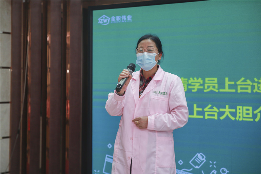 典禮伊始,湖南金職偉業集團董事長彭英女士進行致辭,她對學員們的到來表示熱烈歡迎,同時向學員們分享自己的經歷,從貧寒子弟到公務員,再到為了改變命運,放棄“鐵飯碗”,下海經商成為企業家,彭英女士用自己的親身經歷向學員們講述一個拼搏改變命運的故事,“我們母嬰行業也有很多像我一樣逆襲的事例,我也希望大家能通過自己的努力拼搏,創造屬于自己的財富!”她表示,學員們能來到金職偉業進行培訓,是極其幸運的,不能因為這次培訓班是免費培訓而有所懈怠,最后,她呼吁學員認真學習,“大家一定要抓緊這個機會,按時按點學習,跟緊老師的步伐,憑借這股東風,成為真正的技能型人才,實現自我價值!”