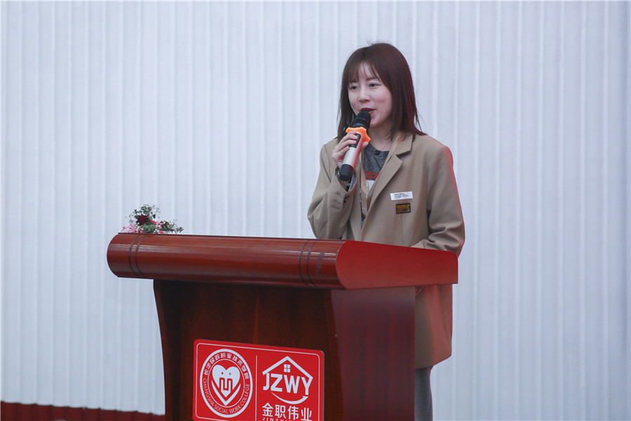 隨后,湖南金職偉業集團董事長彭英發表致辭。彭英首先對各位領導、專家老師的到來致以崇高的敬意并表示熱烈歡迎,并就此次活動分享了四點內容:其一,黨的好政策,金職人在路上。金職偉業深耕托育、母嬰行業十年,長期以來,金職偉業樹立建設產教融合標桿,不斷改革、創新人才培育模式,提升人才培育質量和社會服務水平,輸送大批社會、企業需要的高素質人才。在國家教育、人才、產業政策的大力支持下,金職偉業迎來發展的春天,望今后能夠與各位同仁攜手,實現學生好學、老師好教、企業好用的偉大目標。其二,2020年度幼兒照護職業技能等級證書推進工作卓有成效。金職偉業認真落實各項工作要求,強化責任擔當。其三,充分發揮幼兒照護職業技能等級證書對學校、教師、學生的作用,實現國家職業教育的改革與創新。其四,作為1+X第三批幼兒照護職業技能等級證書職業教育培訓評價組織,金職偉業將繼續發揮龍頭企業的示范性作用,帶動更多的托育、兒童保健、學前等領域的企業規范發展、規模發展、質量發展,并不遺余力推動1+X幼兒照護職業技能等級證書制度的落地。彭英也號召,有條件、有需求的企業多拿出一定資金和資源對學生群體加強就業、創業扶持,幫助學生群體更好地發展。未來,金職人將擁抱偉大的教育情懷,用專業、貼心、創新、感恩的企業精神,堅守讓千萬婦幼產實現健康幸福生活的使命,真正開啟中國夢、金職夢、創業夢,幸福千萬家。最后,彭英強調,2021年是中國共產黨建黨100周年,也是金職偉業開啟第二個五年計劃的第一年,今后,金職偉業將以習近平新時代中國特色社會主義思想為指導,堅守為黨育人、為國育才的初心,以更廣闊的視野、更強的擔當、更大的作為,書寫金職偉業高質量發展的新篇章。
