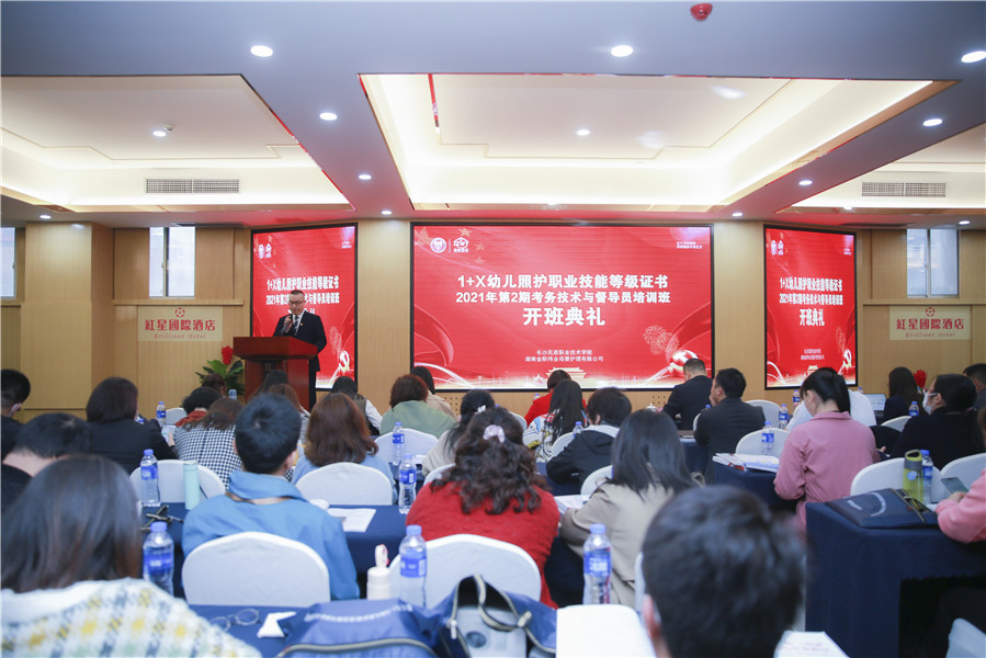 繼1+X幼兒照護職業技能等級證書2021年度第二期師資及考評員培訓班結業后,4月14日上午,1+X幼兒照護職業技能等級證書2021年度第二期考務技術員及督導員培訓班接連開班。來自全國各地的近百位專家、老師齊聚長沙,共同學習幼兒照護相關考務、考評知識。