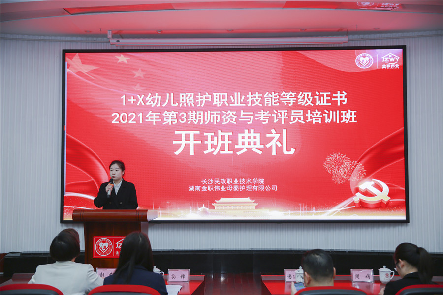 為全面落實《關于在院校實施“學歷證書+若干職業技能等級證書”制度試點方案》,高質量開展1+X幼兒照護職業技能等級證書制度試點相關工作,提高院校整體師資水平,4月8日上午,1+X幼兒照護職業技能等級證書2021年度第三期師資及考評員培訓開班典禮在湖南長沙隆重舉行。
