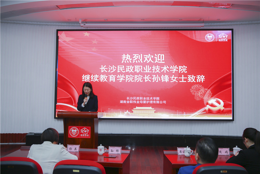 典禮伊始,長沙民政職業技術學院繼續教育學院院長孫鋒率先發表致辭。首先,她對本次1+X幼兒照護職業技能等級證書師資及考評員培訓班的順利召開表示祝賀,同時也對全體老師的到來表示熱烈歡迎。孫峰提到,金職偉業作為一家有情懷、有大愛和有高度責任感的企業,自承擔幼兒照護職業技能等級證書評價工作以來,充分調動幼兒照護領域內骨干企業資源和院校資源,聯合研制《幼兒照護職業技能等級標準》,促進幼兒照護領域相關理論和技能加快形成,為推動健全完善幼兒照護行業服務標準規范做了充分準備。“今后,長沙民政職業技術學院將繼續支持和配合金職偉業的培訓工作,希望各位同仁能抓住此次培訓機會,認真學習,創新幼兒照護人才培養模式。”