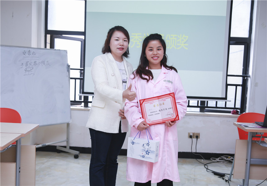 緊接著,資深小兒推拿講師陳喜南為學(xué)員謝泳平頒發(fā)優(yōu)秀學(xué)員證書(shū)。“非常榮幸能獲得這個(gè)獎(jiǎng),12天的學(xué)習(xí)過(guò)得極為充實(shí),在這里我學(xué)到了很多知識(shí),很感謝金職偉業(yè)的老師,她們都很有耐心,有問(wèn)必答,一點(diǎn)也不會(huì)覺(jué)得麻煩,也感謝所有學(xué)員姐妹,希望今后大家也能多聯(lián)系,一起加油進(jìn)步。”謝泳平分享道。