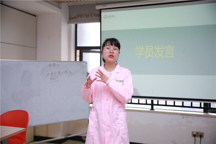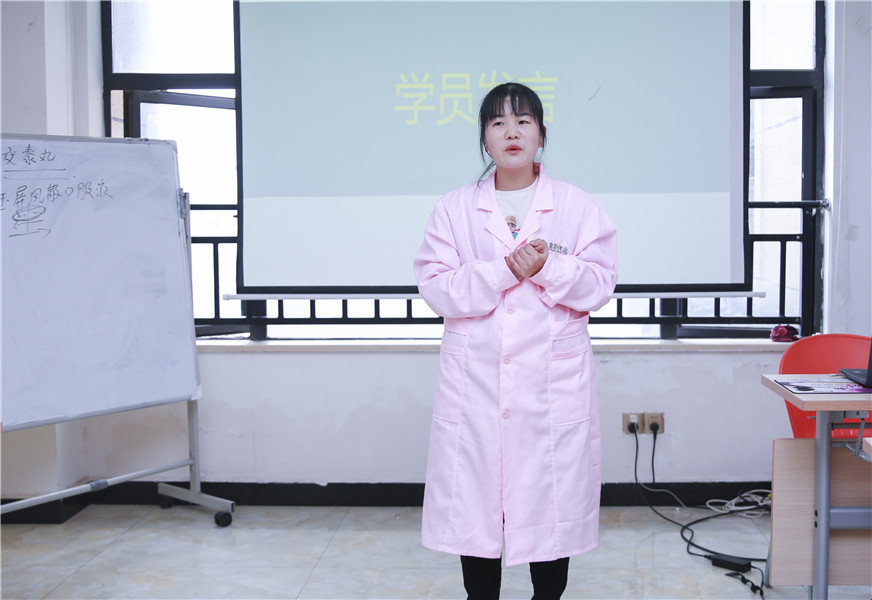 典禮伊始,資深小兒推拿講師陳喜南為學(xué)員送上結(jié)業(yè)祝福。首先,她對(duì)每位學(xué)員順利結(jié)業(yè)表示熱烈地祝賀,“本期課程含金量很高,所以相對(duì)來(lái)說(shuō)課程內(nèi)容比較難,但每位學(xué)員都十分認(rèn)真地學(xué)習(xí),并順利結(jié)業(yè),值得點(diǎn)贊。”同時(shí),她希望,離校后,學(xué)員們也能在家多看書(shū)、多練習(xí),相互之間多交流,共同分享經(jīng)驗(yàn),如果有不懂的問(wèn)題,可以隨時(shí)問(wèn)金職偉業(yè)的老師。