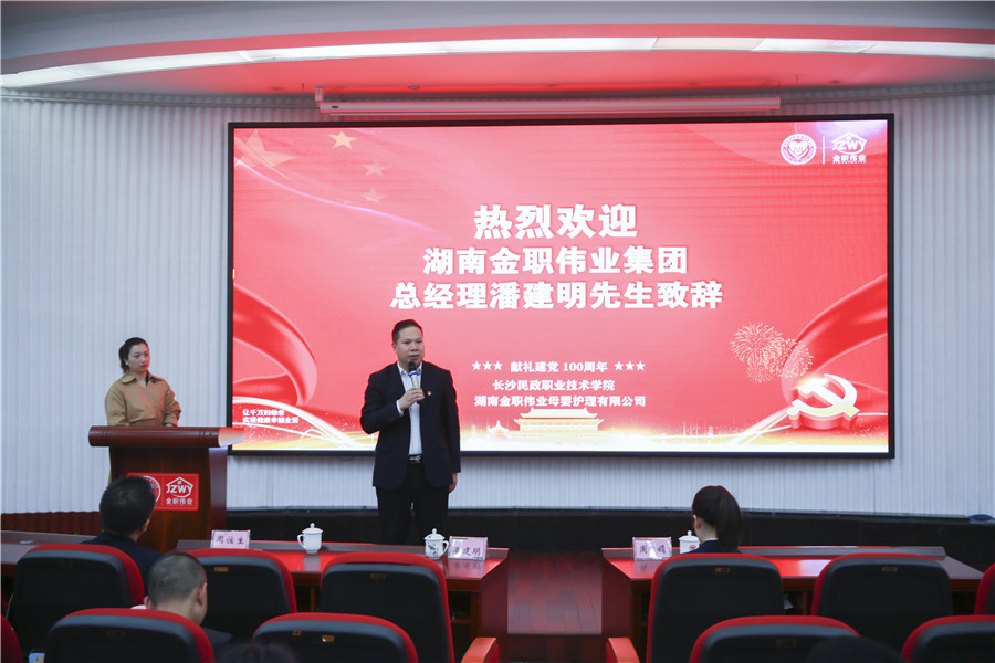 湖南省育嬰師協會會長、湖南金職偉業集團總經理潘建明,湖南省金職偉業集團品牌運營總監兼董事長助理周娟、1+X市場運營總監周該生等出席。
