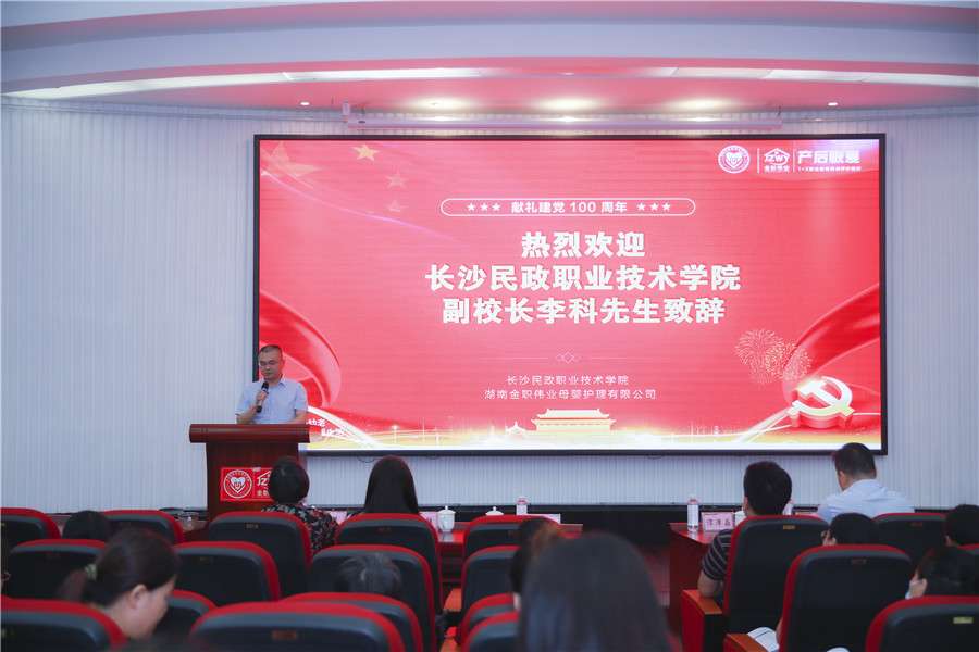 蒞臨本次開班現場的領導有:長沙民政職業(yè)技術學院副校長李科,長沙民政職業(yè)技術學院民政與社會工作學院院長譚澤晶、繼續(xù)教育學院院長孫鋒,湖南金職偉業(yè)集團董事長、金職偉業(yè)商學院院長、卓越創(chuàng)業(yè)導師彭英,湖南金職偉業(yè)集團總經理、湖南省育嬰師協(xié)會會長潘建明。