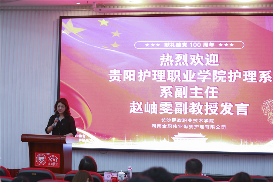 緊接著,貴陽護理職業學院護理系副主任趙岫雯副教授作為學員代表進行發言,“金職偉業作為教育部1+X第三批、第四批職業教育評價組織,承擔1+X證書研發及評價工作,為促進行業發展,助推各院校高質量開展幼兒照護、產后恢復職業技能等級證書制度試點工作,不斷開展各類培訓,為我們提供了廣闊的學習平臺。在此,我代表全體學員對金職偉業表示衷心感謝。”趙岫雯表示,貴陽護理職業學院切實把1+X證書制度試點工作作為深化職業教育改革、提高人才培養質量、拓展就業本領的重要抓手,積極參加職業教育評價組織開展的研討會、師資及考評員培訓、督導員培訓等試點相關工作,將工匠精神、專業精神和職業素養納入人才培養方案中,“今年,我校將增加1+X產后恢復職業技能等級證書等相關項目的培訓和考核,致力為產后恢復行業培養專業的技術技能型人才。”
