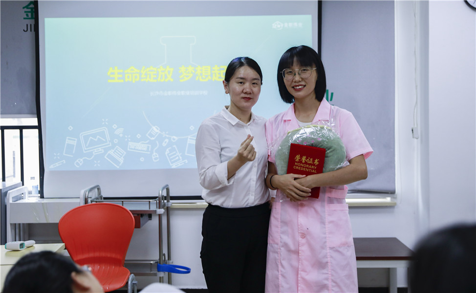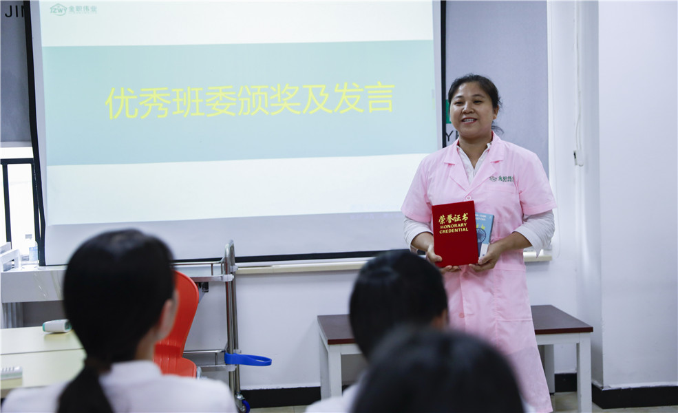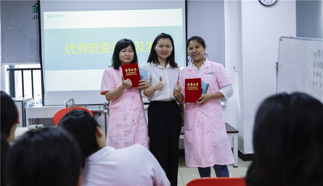緊接著,老師們為認真負責的班干部及表現優異的學員頒發榮譽證書,陳妙榮獲“優秀班干部”稱號;曹靜、陳美麗榮獲“優秀學員”稱號。