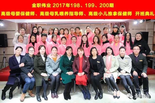 金職偉業198期高級母嬰保健師班、199期高級母乳喂養指導師班、200期高級小兒推拿保健師班同時開班,為學員們打開精彩紛呈的母嬰健康服務技能培訓新天地。金職偉業運營總經理黃娟女士、培訓學校校長陳波女士及各課程指導老師與學員們一起共聚本次開班典禮。