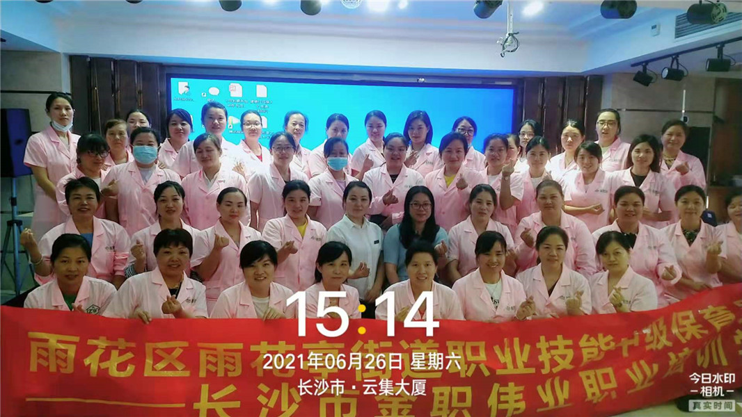 現場,還為表現優異的班干部及學員頒發了榮譽證書。周元、彭梁玉榮獲“優秀班干部”稱號,張利、孫偉林、肖朝霞、李婷榮獲“優秀學員”稱號。在獲獎時,她們均表示很感謝國家的大好政策,也很感謝金職偉業及雨花亭街道提供學習的平臺及機會,能夠讓她們免費接受職業技能培訓。“很多人不理解我已經是一名高級育嬰員,為什么還要繼續來學習養老護理員、保育員的課程。我想告訴你們,機會永遠都是留給有準備的人,多充實自己,才能早日實現自己的人生價值。”班長周元感慨道。