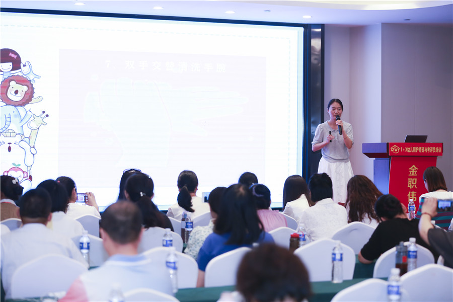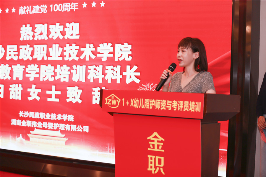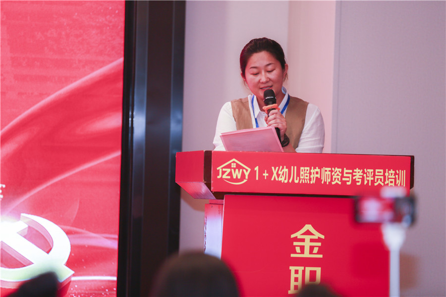 現場,長沙民政職業技術學院繼續教育學院培訓科科長田甜、金職偉業總經理潘建明、金職偉業董事長助理兼品牌運營總監周娟先后進行致辭。他們均對于此次培訓的圓滿結束表示熱烈祝賀,同時也希望各位老師在回校后,能夠將所學的幼兒照護專業知識、技能充分運用于課堂教學,積極推進課證融通、三教改革。“希望各位老師能夠不忘初心、牢記使命,凝心聚力、扎實推進幼兒照護證書試點各項工作,金職偉業將盡最大的努力做好服務工作。也希望每一位老師都能成為學生心中明燈,點亮世界,技能讓生活更美好!”金職偉業總經理潘建明分享道。