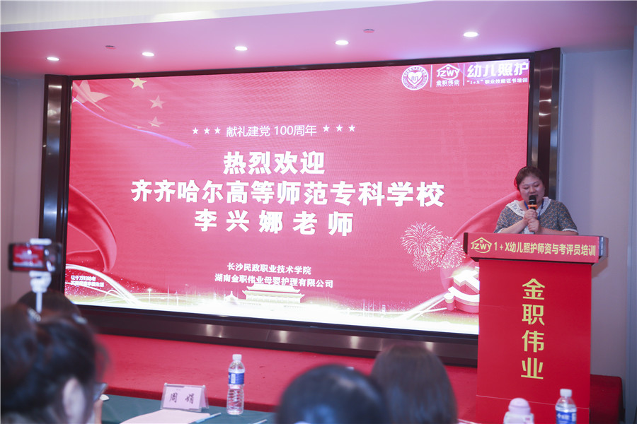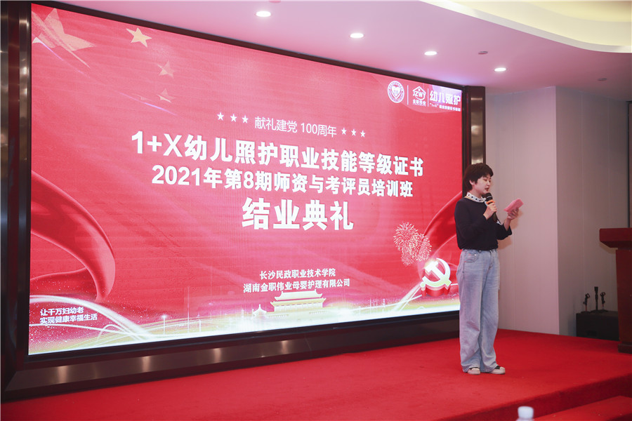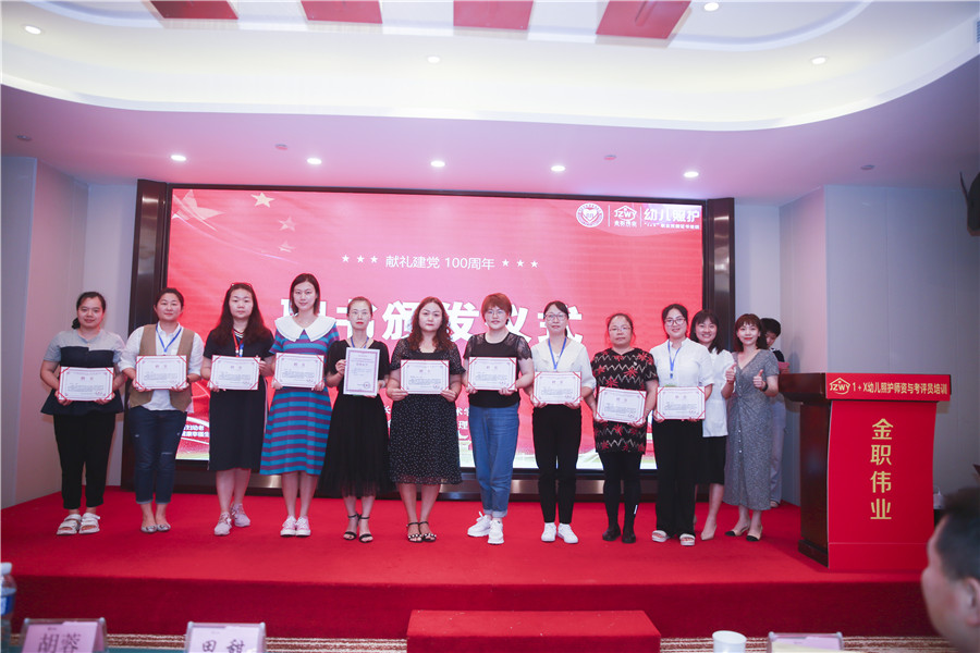 為弘揚職教人的專業精神,慶祝中國共產黨百年華誕,自2021年3月起,金職偉業于每期師資及考評員培訓課程中融入紅色主題活動,于每期結業典禮中增添黨史分享環節。昭通市職業教育中心教師肖艷,在此期培訓結業典禮上分享了羅炳輝將軍的故事,她強調,羅炳輝將軍用畢生的精力實現了自己的諾言:人生最快慰的是真正勇敢地犧牲個人的一切利益,最熱誠努力地為民族獨立、自由解放而斗爭,尤其要為勞動大眾的解放和利益,以真理、正義、公道為人類的幸福而斗爭。“為期一周的培訓,我們累并快樂著!豐富的教學內容,服務周到、專業的金職偉業全體工作人員和專家講師團,讓我們收獲滿滿。”“在慶祝建黨100周年之際,我們因幼兒照護教育事業,相聚在魅力城市長沙,結緣托幼,筑夢未來,在金職偉業的精心安排下,我們共同度過了緊張充實、美好難忘的7天。時光雖短,卻值得我們一生銘記與珍藏,激勵我們重整行裝再出發。”齊齊哈爾高等師范專科學校教師王丹丹、李興娜作為作為優秀學員代表進行發言。與此同時,結業典禮上還評選了一批優秀班干部、優秀學員。