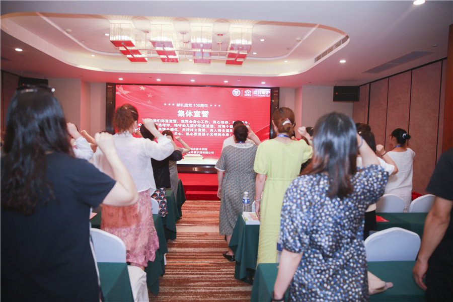 典禮伊始,在主持人的帶領下,在座老師集體起立,握拳宣誓,“我將全身心工作,用心培養,教育學生,盡心盡責,嚴格考評,恪守幼兒照護職業道德,對每個孩子,用愛心去塑造,用真情去感化,用榜樣去激勵,用人格去熏陶。我愿意用真心、愛心、細心、關心、熱心塑造孩子光明的未來!”莫問前路但問遠方,愿我們謹遵誓言,共同支撐起幼兒照護事業的美好明天。