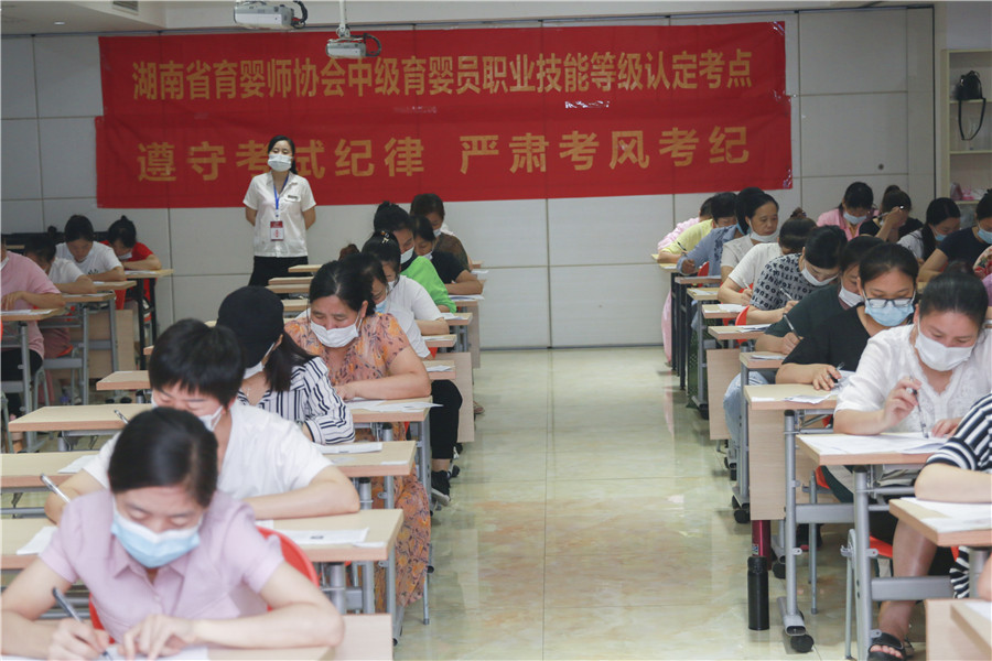 值得一提的是,7月9日上午,湖南省育嬰師協會第四批中級育嬰員職業技能等級認定考核在湖南省育嬰師協會會長單位-金職偉業運營總部進行。來自雨花亭街道中級育嬰員職業技能培訓班的全體學員及來自全國各地的120余名考生共同參加考試。據了解,本次考試分為理論考試和實操考試兩個部分。在理論考試和實操考試合格后,考生可獲得湖南省育嬰師協會頒發的中級育嬰員職業資格證書。