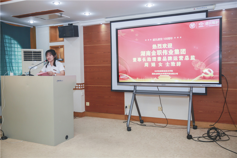 隨后,長沙民政職業技術學院繼續教育學院院長孫鋒,金職偉業董事長助理兼品牌運營總監周娟、市場總監周該生先后進行致辭。首先,孫鋒院長熱烈祝賀各位學員圓滿完成本次師資及考評員培訓,“此次培訓課程豐富而充實,相信各位學員老師已經完全了解和熟悉1+X證書制度,掌握了幼兒照護證書的標準以及核心技能。希望大家回到各自工作崗位之后,積極交流和分享課證融合工作的優秀經驗和方法,取長補短,互相借鑒,真正把這項技能融入到課程教學當中,培養合適崗位需求的學生。”周娟在講話中提到,今后金職偉業將借助1+X平臺,不留余力地完善、創新幼兒照護領域的標準、課程、服務、教材體系,并積極落地1+X幼兒照護課程實訓基地的建設,協助各大院校逐步推進1+X證書制度試點工作。