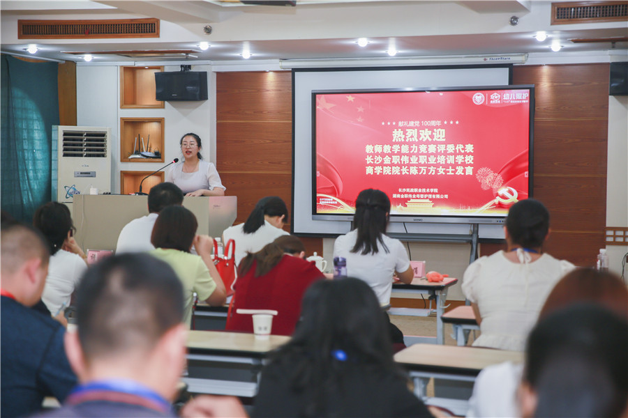 湖南金職偉業母嬰護理有限公司1+X幼兒照護項目委員會為本次1+X幼兒照護職業技能等級證書師資及考評員培訓教師教學能力競賽特聘專家評委頒發聘書。而后,此次教學教學能力競賽評委代表、金職偉業商學院院長陳萬方公布了本次競賽最終結果并作點評。此次競賽,以合肥幼兒師范高等專科學校吳婕老師為代表的第五組榮獲團體一等獎,以貴港市職業教育中心蔡燕瓊老師為代表的第四組榮獲團體二等獎,以四川省華鎣職業技術學校任海萍老師為代表的第三組榮獲團體三等獎。“今天利用這個交流的機會,和大家探討在教學設計和教學實施方面,國家教學能力大賽中比較注重的三個方面:課程思政、信息化技術、無生課堂。最后,再次感謝各位老師帶來的精彩教學展示,也希望各位老師常來長沙,金職偉業永遠歡迎你們!”
