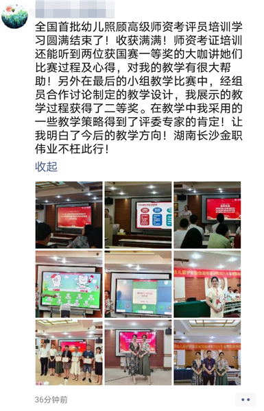 至此,1+X幼兒照護職業技能等級證書教師教學能力競賽暨2021年度首期高級師資及考評員培訓圓滿落幕。接下來,金職偉業將持續開展此類活動,加強高層次人才引培,建設高素質師資隊伍,以實際行動書寫幼兒照護事業更加美好的明天,踐行新時代新擔當、新作為。