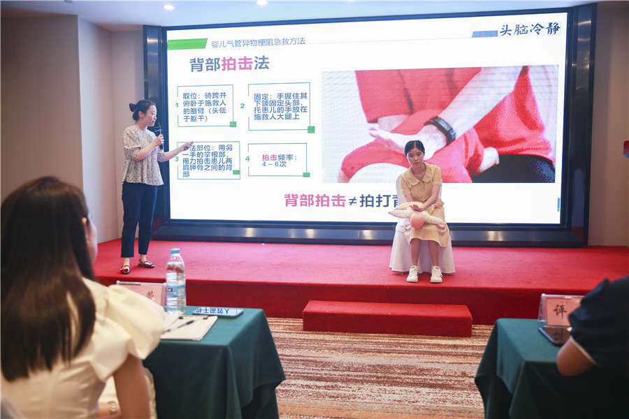 氣管異物是導(dǎo)致幼兒意外死亡的常見原因,多發(fā)生在1-5歲的兒童,其發(fā)病驟然,病變迅速,危險性大,怎樣快速又準(zhǔn)確地對幼兒進(jìn)行急救,挽救其生命,是每位幼兒教師義不容辭的責(zé)任。鄂爾多斯職業(yè)學(xué)院郝欣老師團隊,以《氣管異物及急救》為主題,分步驟、有條理、舉實例,詳細(xì)生動地講解了氣管異物急救的處理方法,并榮獲本次教師教學(xué)能力競賽一等獎。接著,長沙民政職業(yè)技術(shù)學(xué)院教學(xué)咨詢與指導(dǎo)團隊專家、湖南省教育考試院藝術(shù)類考試評委庫專家胡蓉作為評審專家,在點評時分享了“無學(xué)生授課”的三條解決路徑:一,教師可以進(jìn)行新知講解;二,可以進(jìn)行操作示范或演示;三,可以對學(xué)生作品或作業(yè)進(jìn)行評價小結(jié)。
