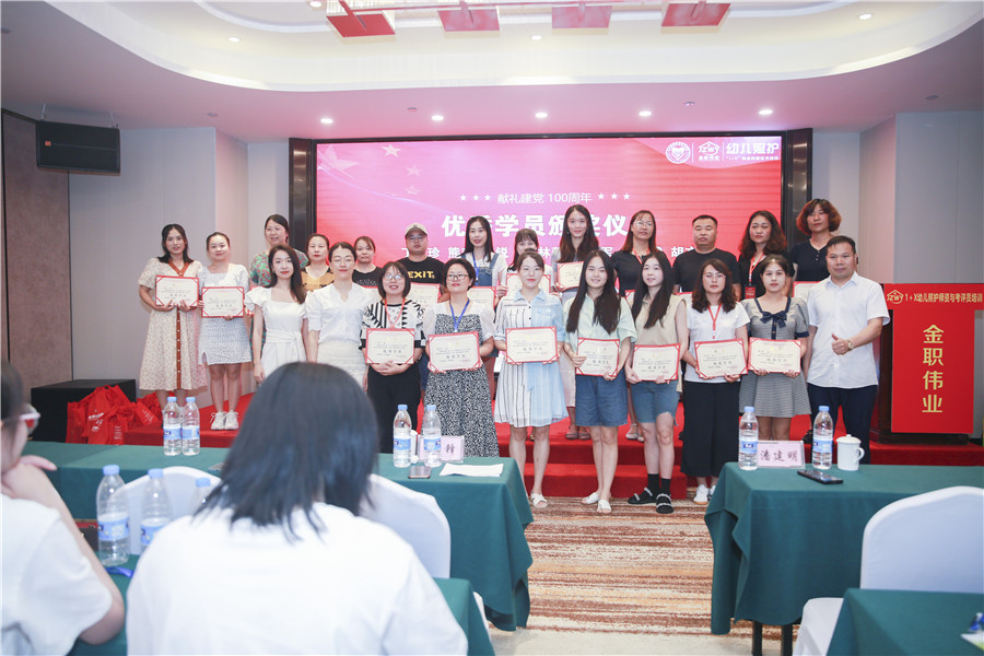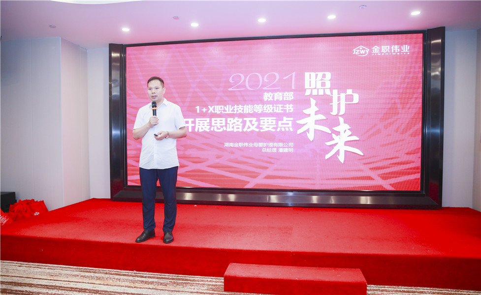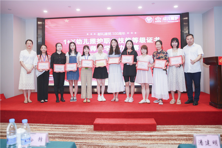 比賽結(jié)束后,1+X幼兒照護職業(yè)技能等級證書2021年度第十二期師資及考評員培訓(xùn)結(jié)業(yè)典禮正式拉開帷幕。長沙民政職業(yè)技術(shù)學(xué)院繼續(xù)教育學(xué)院院長孫鋒、金職偉業(yè)總經(jīng)理潘建明出席并發(fā)言。“希望大家回到各自的工作崗位后,能互通有無,相互交流分享課證融合工作中好的經(jīng)驗和做法,取長補短,真正把幼兒照護的各項核心技能點融入到相關(guān)專業(yè)課的教學(xué)中,不斷培養(yǎng)適合職業(yè)崗位需求的學(xué)生。”長沙民政職業(yè)技術(shù)學(xué)院繼續(xù)教育學(xué)院院長孫鋒說道。典禮上,金職偉業(yè)總經(jīng)理潘建明對未來做好1+X證書制度試點工作,提出“積極參加社會實踐”“申報考核站點”“做好課證融通”等12點戰(zhàn)略方向,潘建明希望各院校能不斷深化復(fù)合型技術(shù)技能人才培養(yǎng)模式,全力提升教育質(zhì)量,為幼教事業(yè)獻(xiàn)出自己的力量。