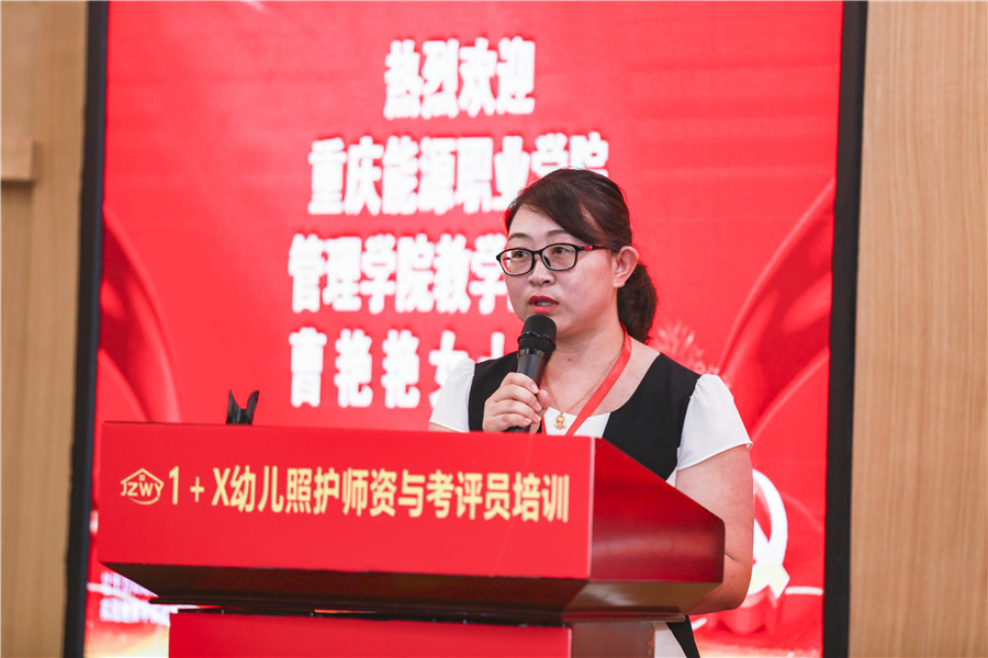隨后,來自重慶能源職業學院管理學院教學副院長曹艷艷老師作為學員代表上臺發言,“我們全體學員將以飽滿的熱情、勤懇的作風、高度認真的態度參加此次培訓學習,真正做到學有所獲,學有所悟,將所獲所悟運用到三教改革、課證融通、深化產教融合、校企合作作的實踐中。并在學習中總結,在總結中應用、應用中提煉、提煉中升華,讓我們視野更開闊、思想更開拓,方法更科學,為辦人民滿意的職業教育走出更加堅定的步伐!”
