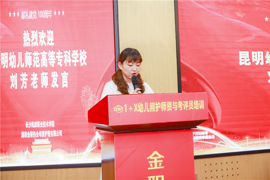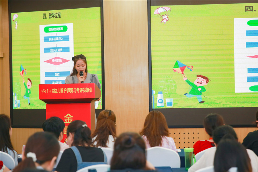 隨后,來自昆明幼兒師范高等專科學(xué)校的劉芳老師、陜西能源職業(yè)技術(shù)學(xué)院的陳小紅老師作為學(xué)員代表分享自己的學(xué)習(xí)收獲。劉芳老師提到,“金職偉業(yè)特意聘請(qǐng)了在幼兒照護(hù)方面富有理論和實(shí)踐經(jīng)驗(yàn)的專家團(tuán)隊(duì)給我們講課,內(nèi)容從宏觀、中觀、微觀全方位的展示了深化職教改革背景下,1+X職業(yè)技能等級(jí)證書改革試點(diǎn)工作的深遠(yuǎn)意義,讓我們對(duì)完善人才培養(yǎng)方案、深化三教改革、校企合作、課證融通等有了更深刻的認(rèn)識(shí),為今后開展試點(diǎn)工作打下了堅(jiān)實(shí)的基礎(chǔ)。”陳小紅老師分享道,“通過這幾天的學(xué)習(xí),我對(duì)于幼兒照護(hù)項(xiàng)目、職業(yè)技能和教學(xué)內(nèi)容都有了全新的認(rèn)識(shí)和理解。課程安排緊湊、合理、有序,內(nèi)容豐富多彩,達(dá)到了預(yù)期學(xué)習(xí)培訓(xùn)的效果。回校后,將組織我校護(hù)理、助產(chǎn)、幼教等專業(yè)的學(xué)生通過系統(tǒng)學(xué)習(xí),更好地掌握幼兒照護(hù)的技能、考取證書,獲取人生發(fā)展的新路徑,更好地拓展我校就業(yè)創(chuàng)業(yè)全新路徑。”