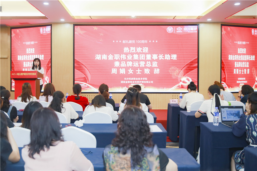 教師教學(xué)能力競(jìng)賽結(jié)束后,1+X幼兒照護(hù)職業(yè)技能等級(jí)證書2021年度第九期師資及考評(píng)員培訓(xùn)結(jié)業(yè)典禮正式開啟。金職偉業(yè)總經(jīng)理潘建明、董事長助理兼品牌運(yùn)營總監(jiān)周娟出席并發(fā)言。周娟著重分享了感恩、創(chuàng)新、期待三點(diǎn),今后,金職偉業(yè)將不留余力地完善、創(chuàng)新幼兒照護(hù)領(lǐng)域的標(biāo)準(zhǔn)、課程、服務(wù)、教材體系,并積極落地1+x幼兒照護(hù)課程實(shí)訓(xùn)基地的建設(shè),協(xié)助各大院校逐步推進(jìn)1+x證書制度試點(diǎn)工作,多措并舉促進(jìn)“書證融通”,全面深化“三教”改革。典禮上,金職偉業(yè)總經(jīng)理潘建明對(duì)未來做好1+X證書制度試點(diǎn)工作,提出“積極參加社會(huì)實(shí)踐”“申報(bào)考核站點(diǎn)”“做好課證融通”等12大戰(zhàn)略方向,同時(shí),他希望各院校能不斷深化復(fù)合型技術(shù)技能人才培養(yǎng)模式,全力提升教育質(zhì)量,為幼教事業(yè)獻(xiàn)出自己的力量。
