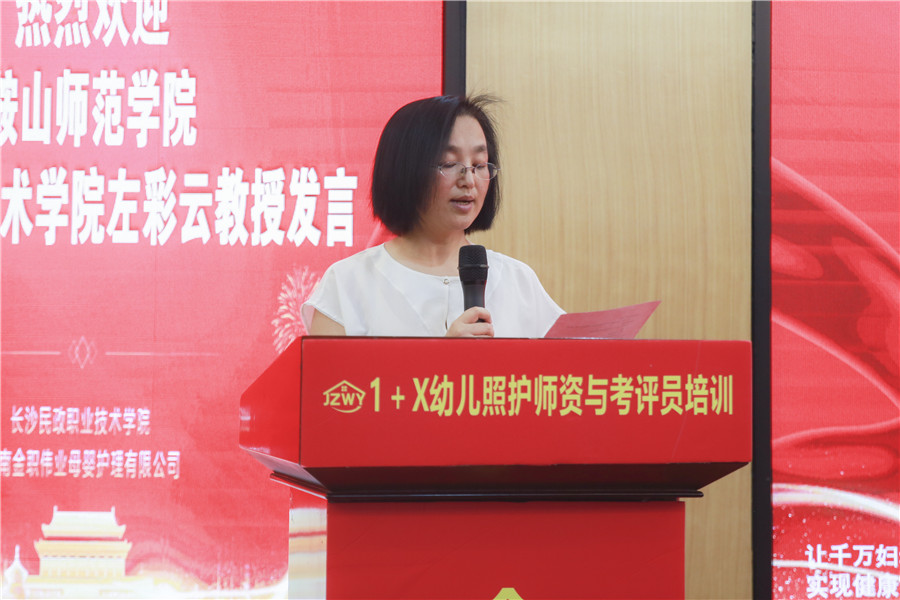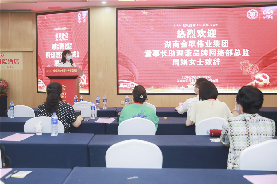 結業典禮上,金職偉業董事長助理兼品牌運營總監周娟進行開場致辭,“感謝所有授課專家的辛勤付出,也感謝在座老師不遠千里來到長沙參加此次培訓。”同時,周娟期望,各位同仁能成為1+X幼兒照護、產后恢復職業技能等級證書的傳播者,擔起造福民生的重任,托起中華民族偉大復興中國夢!