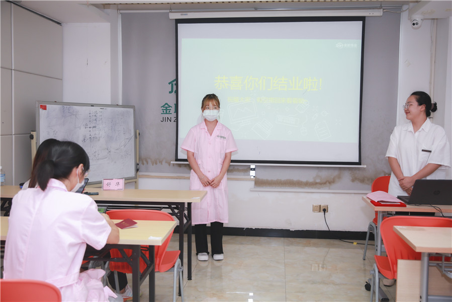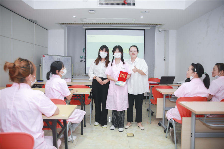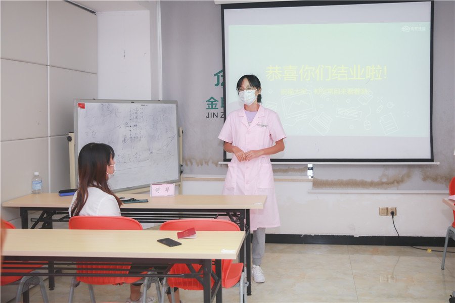 此次結業典禮,還對表現優異的學員進行了表彰,她們分別是“優秀班干部”鄒明菊,“優秀學員”楊細樂。“很感謝金職偉業的老師,老師們在培訓期間認真負責,還教授了大量的產后康復專業知識及實操技能,最終讓我學有所成,學有所獲。”在獲獎時,學員楊細樂分享道。