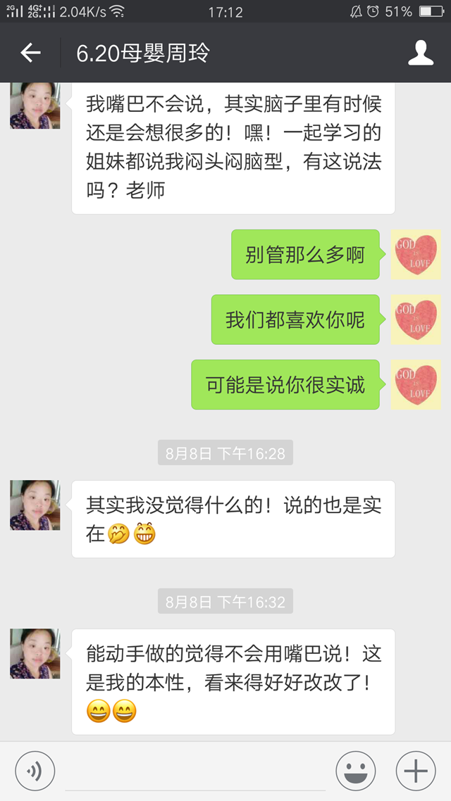 一開始,周姐姐覺得自己太過于悶頭悶腦,擔心自己學不會,甚至擔心影響到自己的就業,在教務老師閆老師的開導下繼續堅持下去,之后在推薦就業后,進入了月子中心工作,周玲說“自從進入這個行業后,感覺之前的日子都白過了,現在自己能賺錢,能獨立,感覺說話都有底氣了”在工作了一段時間之后,覺得多一些技能工資更高,于是又再次回到金職偉業學習了母乳喂養指導師(催乳師)。