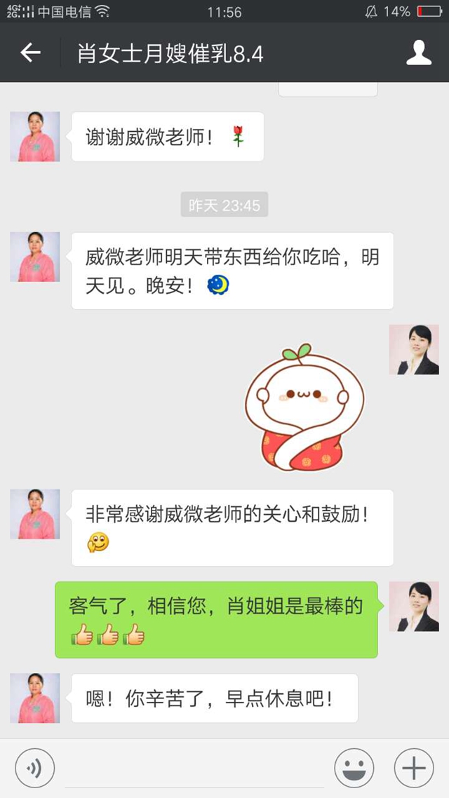 張家界高級催乳師、高級月嫂肖元珍就業跟蹤