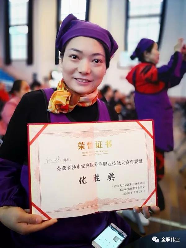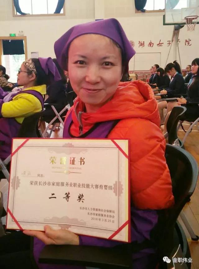 在唐老師的悉心指導下,兩位選手一路過關斬將,通過前期筆試,順利進入了25日的實操比拼。最終黃麗排名育嬰組第二,獲得二等獎,將與另兩位獲獎選手代表長沙市參加湖南省家庭服務業(yè)職業(yè)技能大賽;郭小艷排名第七,獲得優(yōu)勝獎。金職偉業(yè)團隊也憑借出色的賽場表現(xiàn),斬獲團體一等獎,可喜可賀!