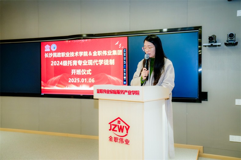 開班儀式為助力技能人才培養與職業崗位需求相契合,2025年1月6日,長沙民政職業技術學院2024級嬰幼兒托育服務與管理專業現代學徒制在長沙市