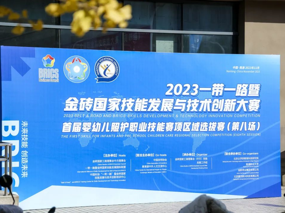 11月24日,2023一帶一路暨金磚國家技能發展與技術創新大賽之首屆嬰幼兒照護職業技能賽項區域選拔賽(第八場)在南通職業大學舉行開幕式。南