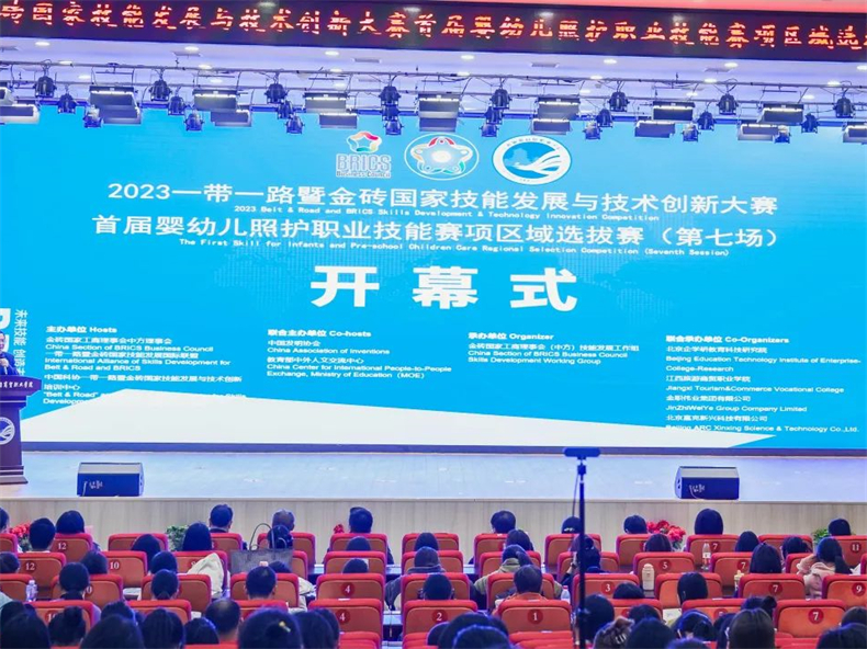 11月24日,2023一帶一路暨金磚國家技能發展與技術創新大賽之首屆嬰幼兒照護職業技能賽項區域選拔賽(第七場)在南昌開幕。賽項為個人賽,分
