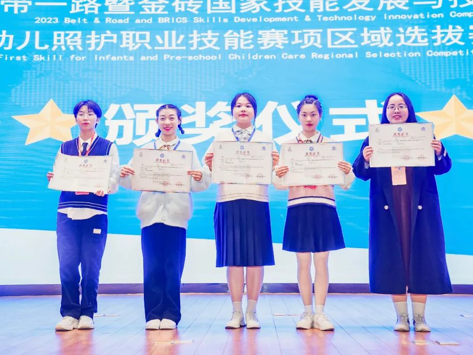 11月26日,2023一帶一路暨金磚國家技能發展與技術創新大賽首屆嬰幼兒照護職業技能賽項區域選拔賽(第十一場)閉賽式暨頒獎儀式在昆明幼兒師