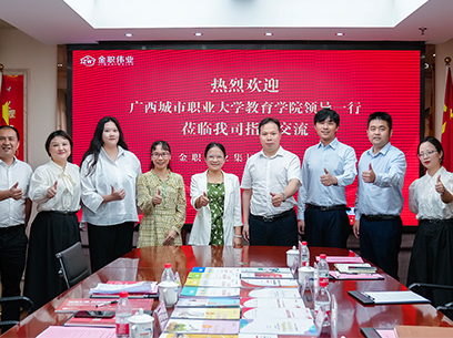 6月20日,廣西城市職業大學教育學院副院長羅春霞、王永奎、教研室主任覃甲榮一行蒞臨我司考察交流,金職偉業總經理潘建明、院校事業部副總