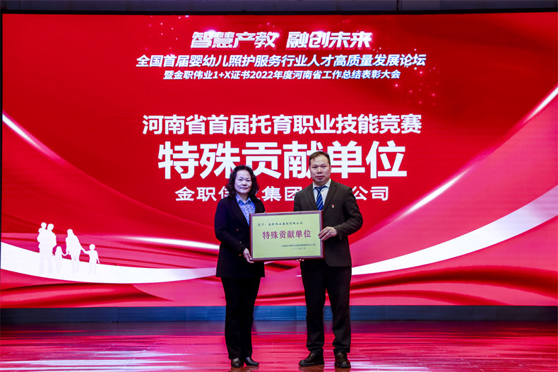 喜報!河南托育競賽組委會授予金職偉業“特殊貢獻單位”