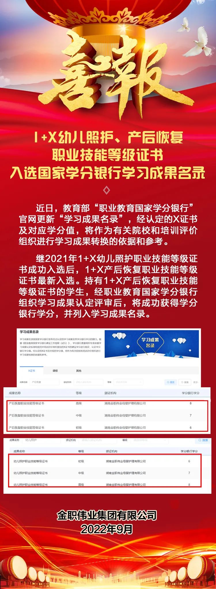 1+X產后恢復等級證書成功入選國家學分銀行學習成果名錄