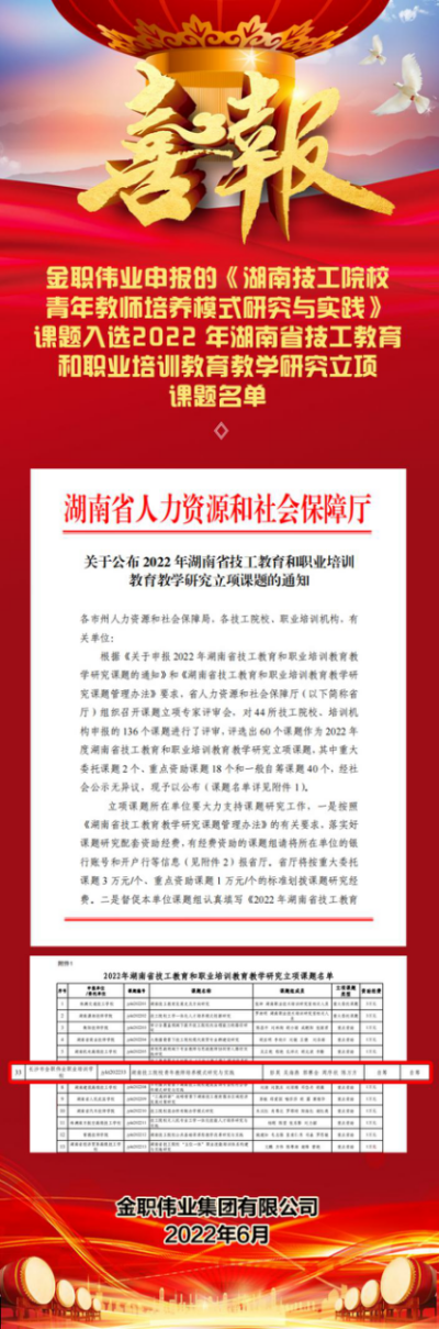 喜訊!金職偉業《湖南技工院校青年教師培養模式研究與實踐》課題入選2022 年湖南省技工教育和職業培訓教育教學研究立項課題名單