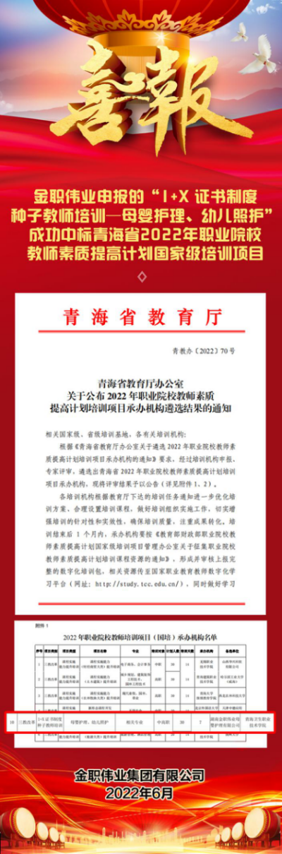 喜訊|金職偉業中標青海省2022 年職業院校教師素質提高計劃