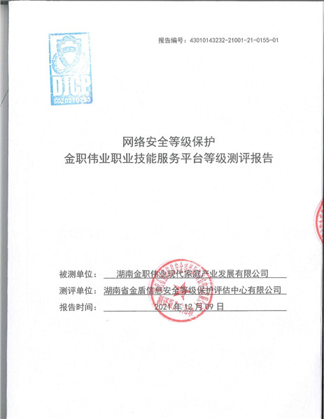 近日,金職偉業(yè)職業(yè)技能服務(wù)平臺系統(tǒng)順利通過“國家信息系統(tǒng)安全等級保護(hù)”三級測評備案認(rèn)證,這標(biāo)志著金職偉業(yè)職業(yè)技能服務(wù)平臺系統(tǒng)安全性達(dá)到行業(yè)高標(biāo)準(zhǔn),可全面確保用戶信息與隱私