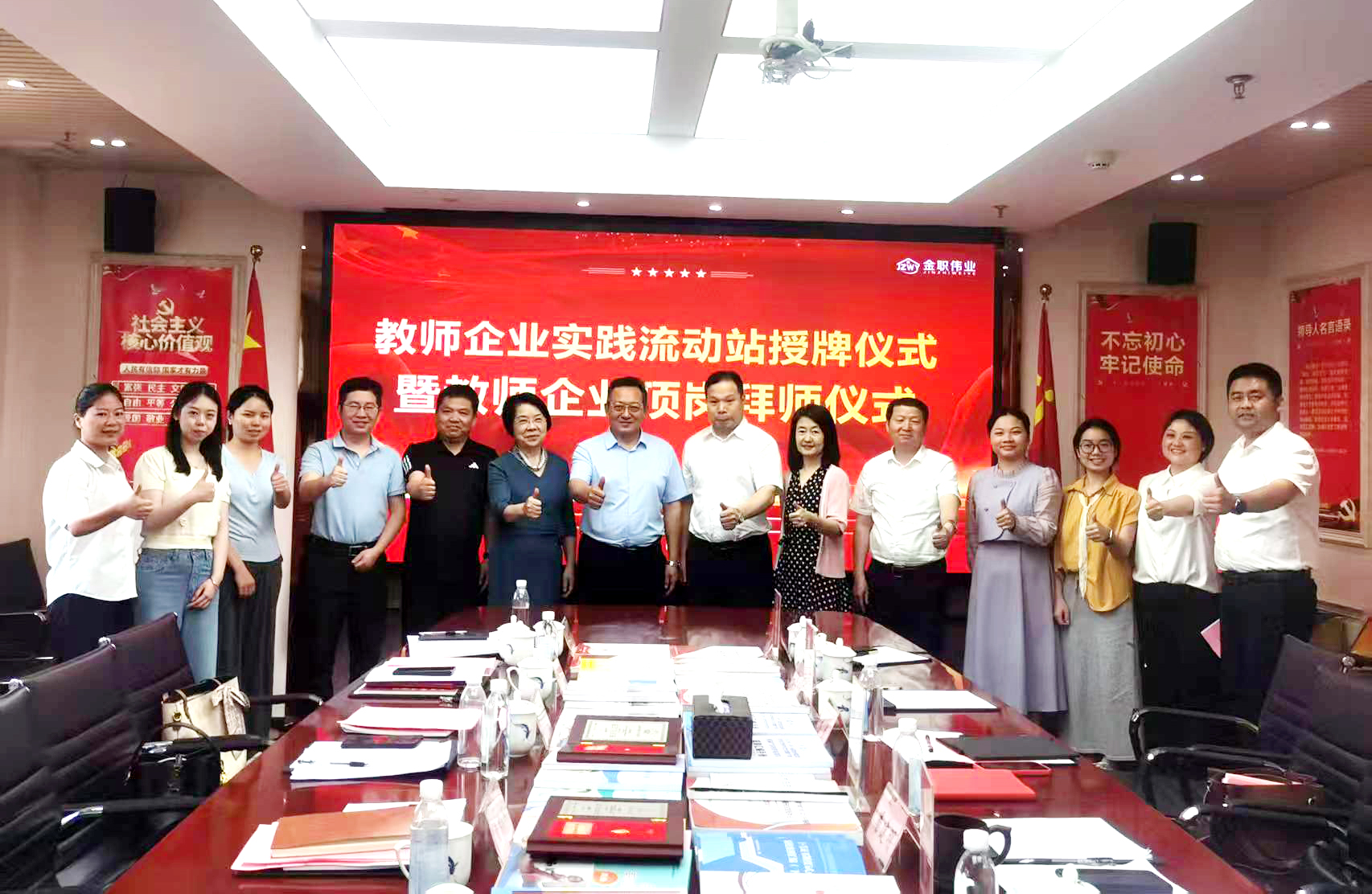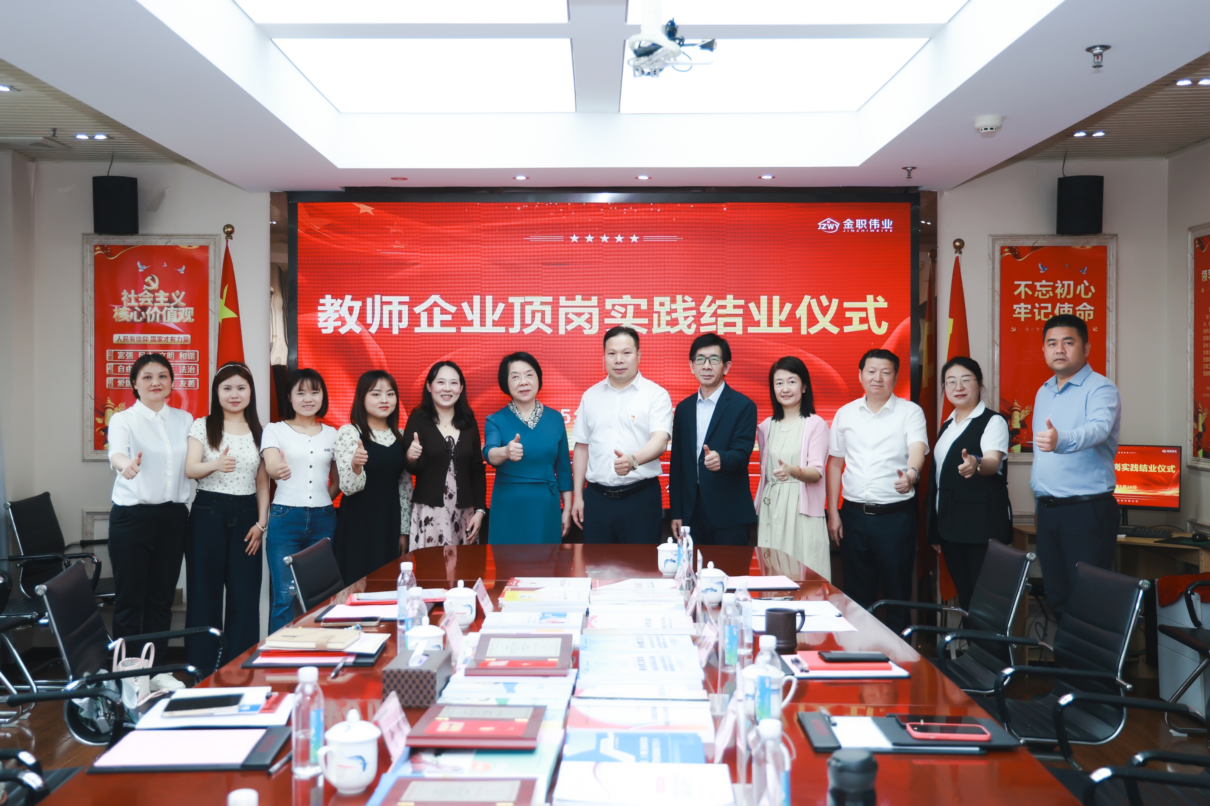 為深化教師企業(yè)頂崗實踐成果,推動職業(yè)院校雙師素質(zhì)建設,5月28日上午,金職偉業(yè)集團在云集大廈4樓會議室舉辦教師企業(yè)頂崗實踐結(jié)業(yè)儀式。