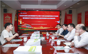 5月4日下午金職偉業特舉辦專題交流座談會。職業教育國家學分銀行平臺技術負責人鄧清泉、金職偉業總經理潘建明、金職偉業特聘專家艾靈仙、1+X運營總監周該生、發展事業部經理劉志杰等參