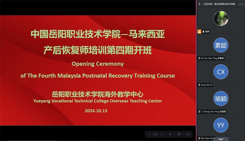 為推動(dòng)職業(yè)教育走出去,全面培育產(chǎn)后恢復(fù)國(guó)際標(biāo)準(zhǔn)化人才,近日,岳陽(yáng)職業(yè)技術(shù)學(xué)院·馬來(lái)西亞產(chǎn)后恢復(fù)師培訓(xùn)第四期在線上正式開(kāi)展。此次培訓(xùn)