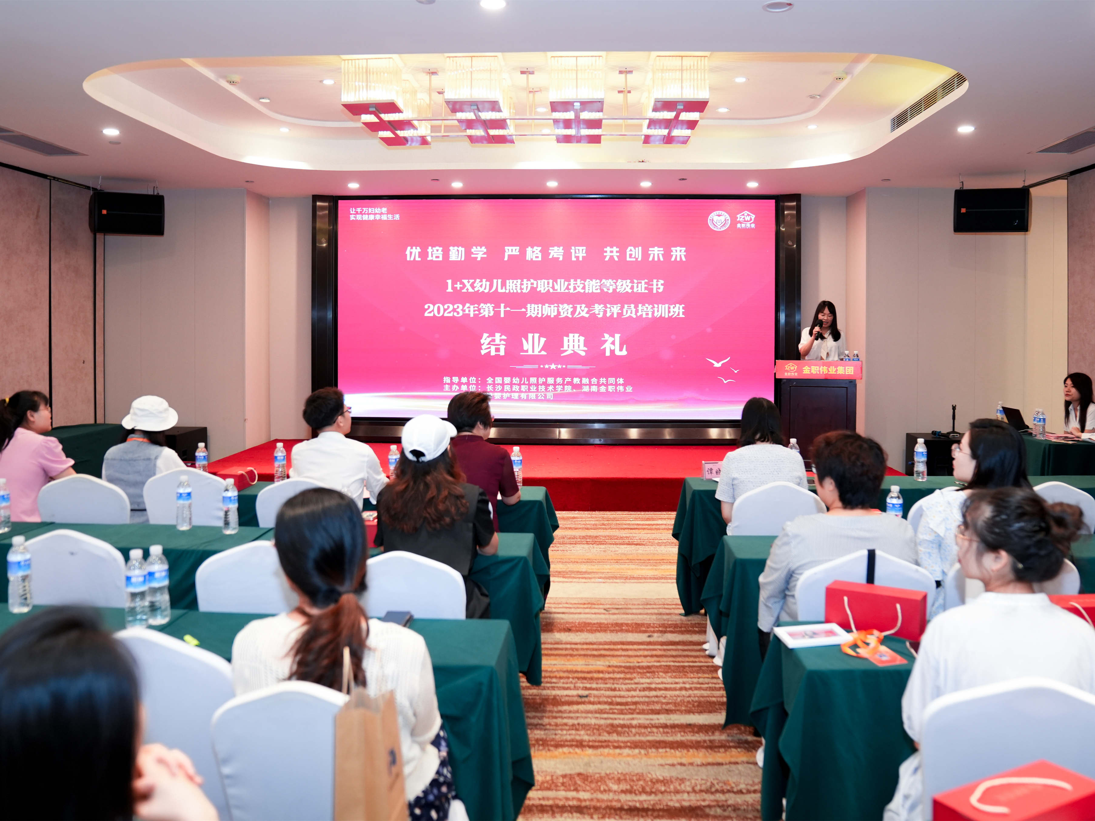 8月20日,1+X幼兒照護(hù)職業(yè)技能等級(jí)證書2023年第11期師資及考評(píng)員培訓(xùn)班在湖南長(zhǎng)沙正式開(kāi)班,金職偉業(yè)董事長(zhǎng)助理兼品牌運(yùn)營(yíng)總監(jiān)周娟、院校事