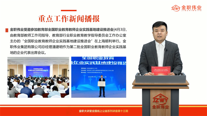 4月15日,金職大講堂第70講正式開講,課程邀請到長沙衛生職業學院任森副教授,以嬰幼兒營養與膳食指導為主題進行授課。課程伊始,金職偉業