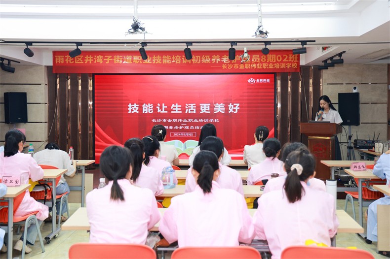 8月26日,由雨花區人社局主辦、雨花區井灣子街道與長沙市金職偉業職業培訓學校聯合開設的雨花區井灣子街道職業技能培訓第四期初級養老護理