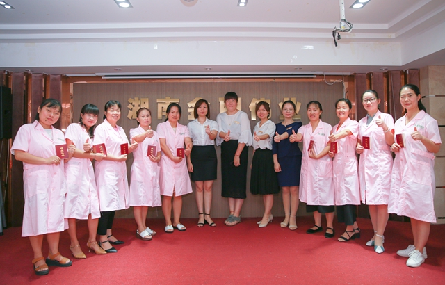 6月11日上午,在長沙金職偉業職業培訓學校創業孵化基地,舉行了315期月嫂、316期產后康復師、317期催乳師、318期小兒推拿師班開班典禮,四班同開,場面熱鬧非凡。