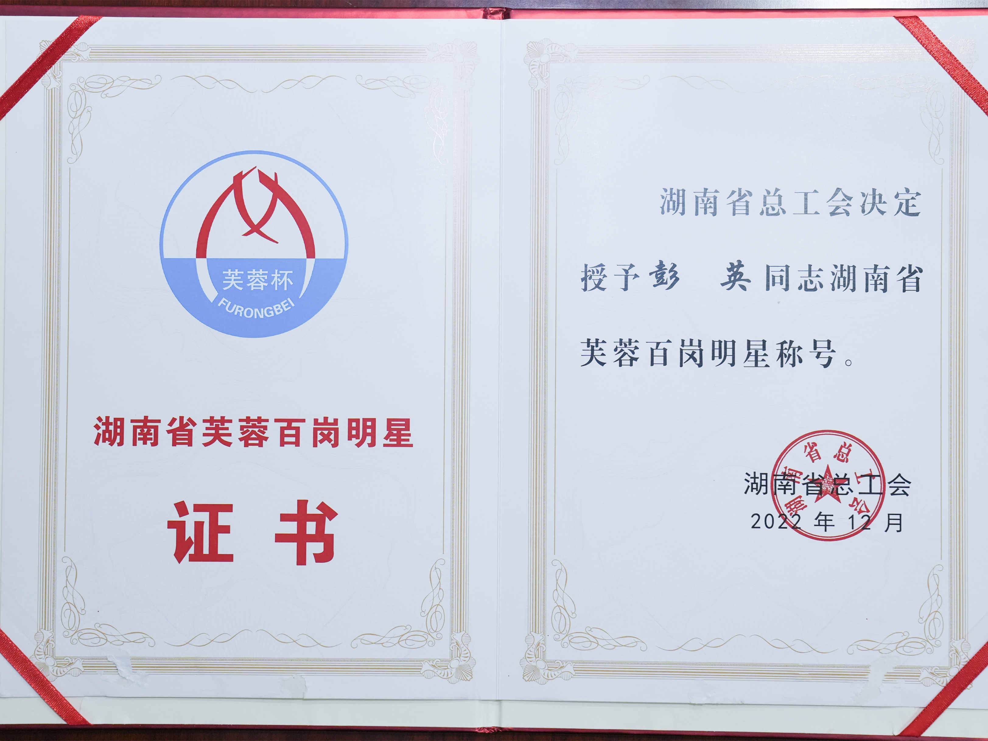 金職偉業董事長彭英獲評“湖南省芙蓉百崗明星”榮譽稱號